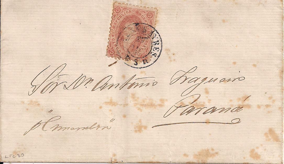11 outer to Parana, tied to cover by circular BUENOS AYRES datestamp, some staining on front, $75 PHOTO