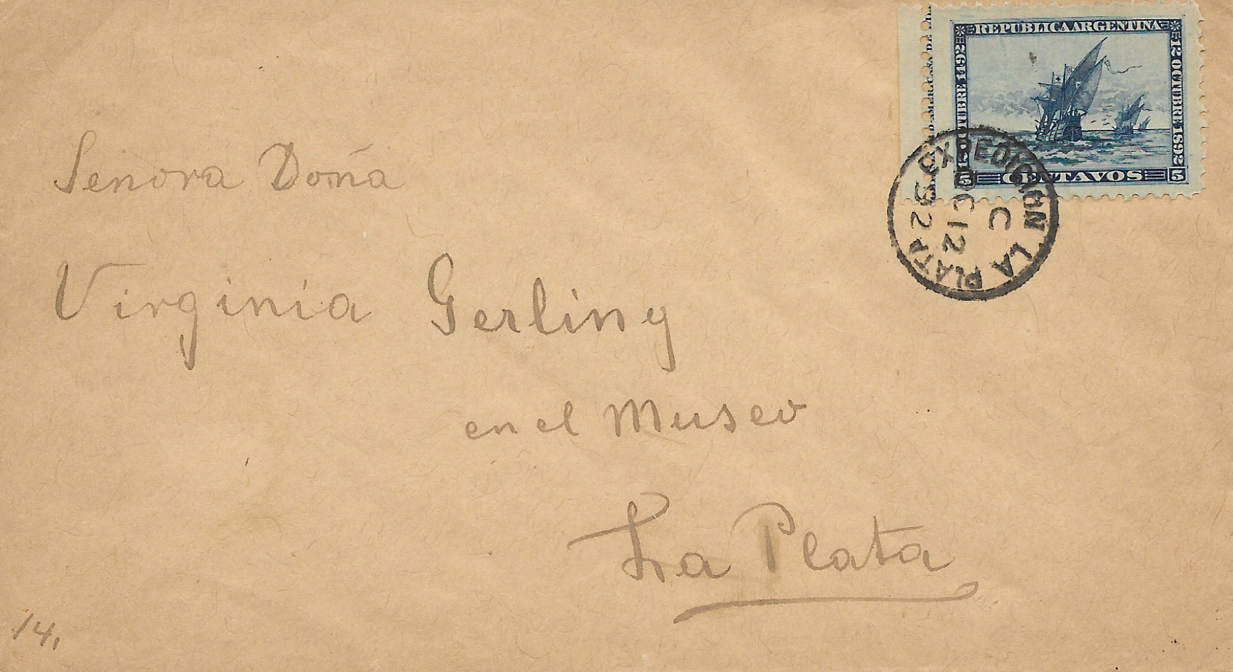 91 October 12, 1892 local La Plata usage tied by Expedicion La Plata CDS, back as interesting Listas y abonados La Plata ccl. Valid for use only one day. $50 SCAN