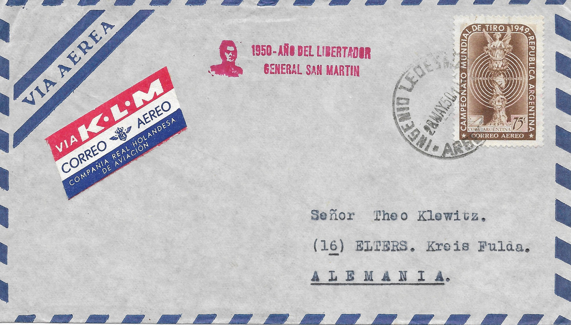 C58 on May 28, 1950 cover from tiny town of Ingenio Ledesma to Germany, includes unusual "1950 Aņo del liberatador General San Martin"and bust marking in red $15 SCAN