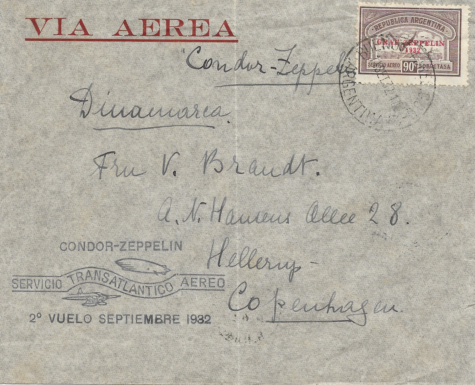 C37--2nd Zeppelin flight (September 1932) to Copenhagen, attractive handstamped cachet in black, appropriate receiving marks on reverse $75 SCAN1 SCAN2