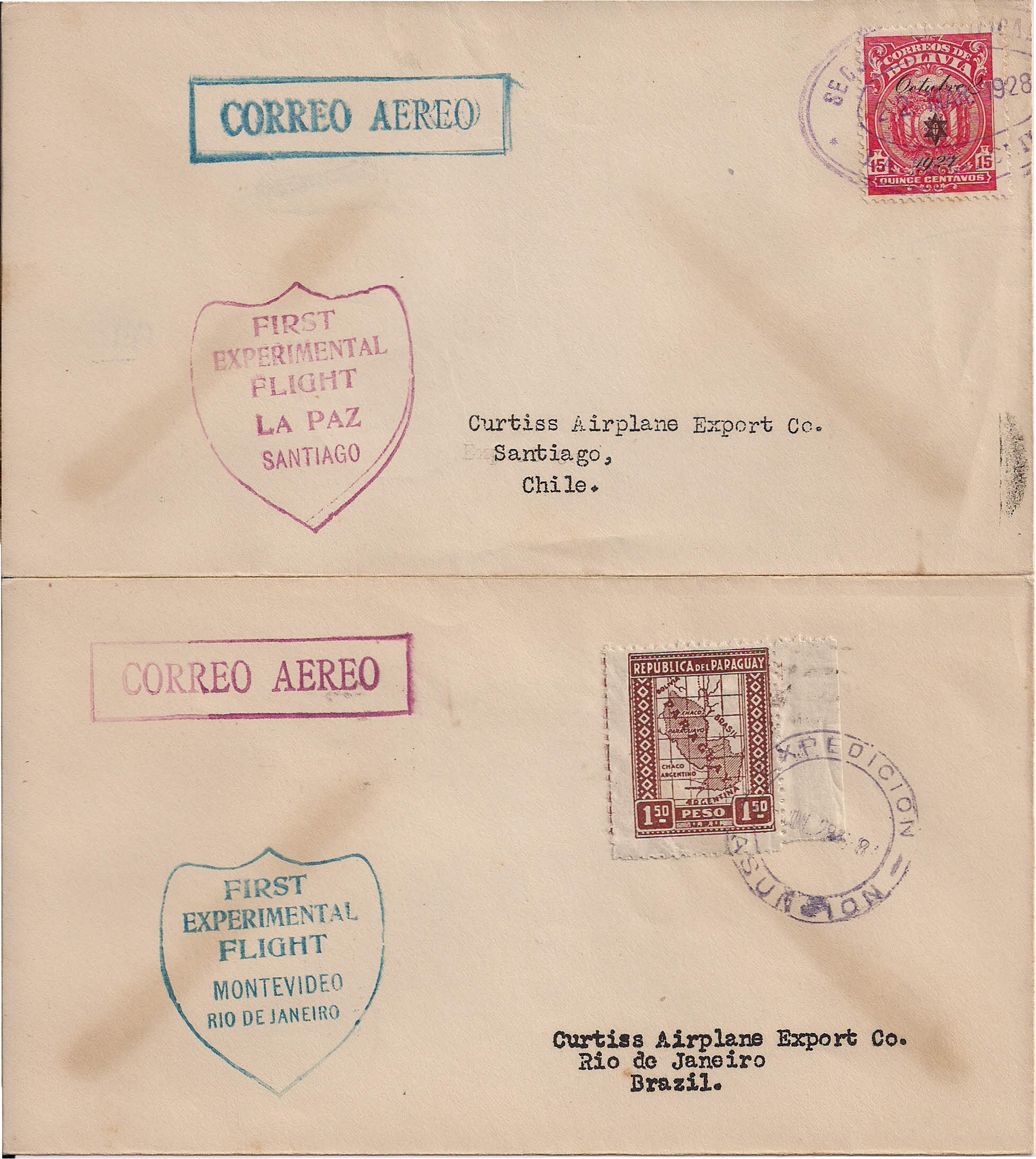 South American Experimental Flights from 1928. single cover, La Paz to Santiago, $50 PHOTO
