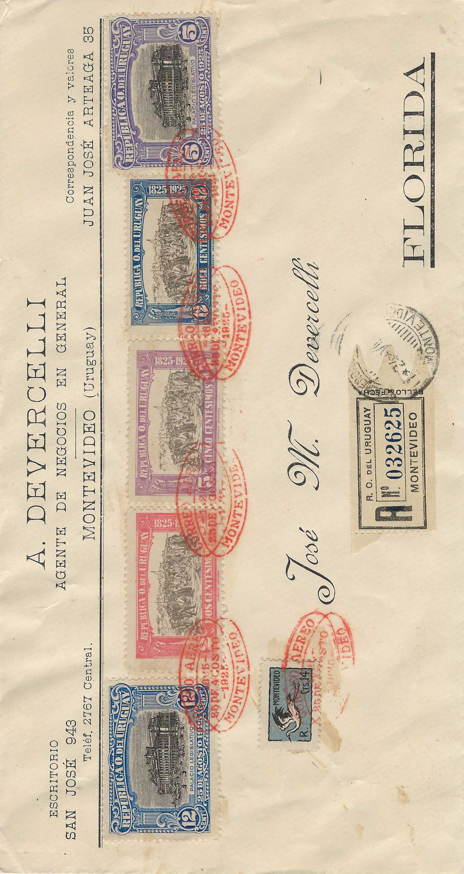 First Day Cover of C9 with 305, Registered Montevideo to Rincon, C7 only valid for use on date of issue $50. PHOTO