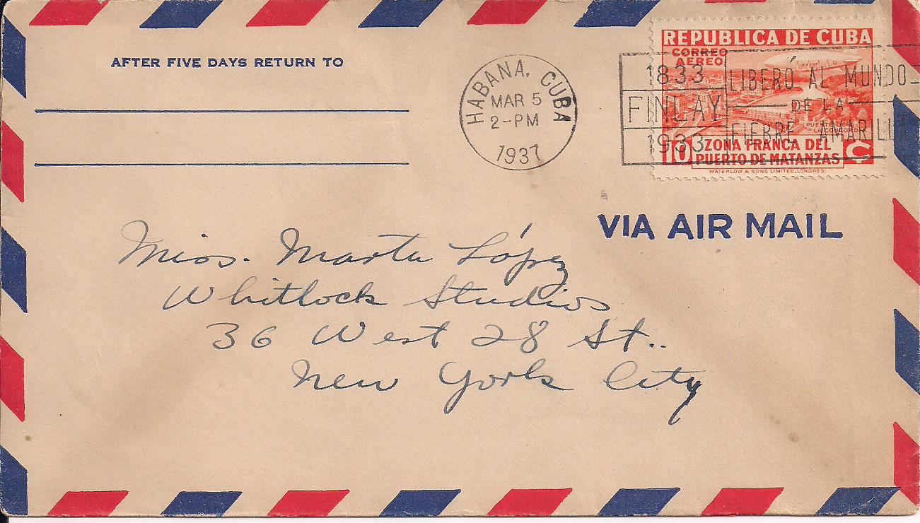 C19 on March 7, 1937 cover from Havana to NYC with "Finlay--freed the world from Yellow Fever" slogan cancel, attractive $10 SCAN