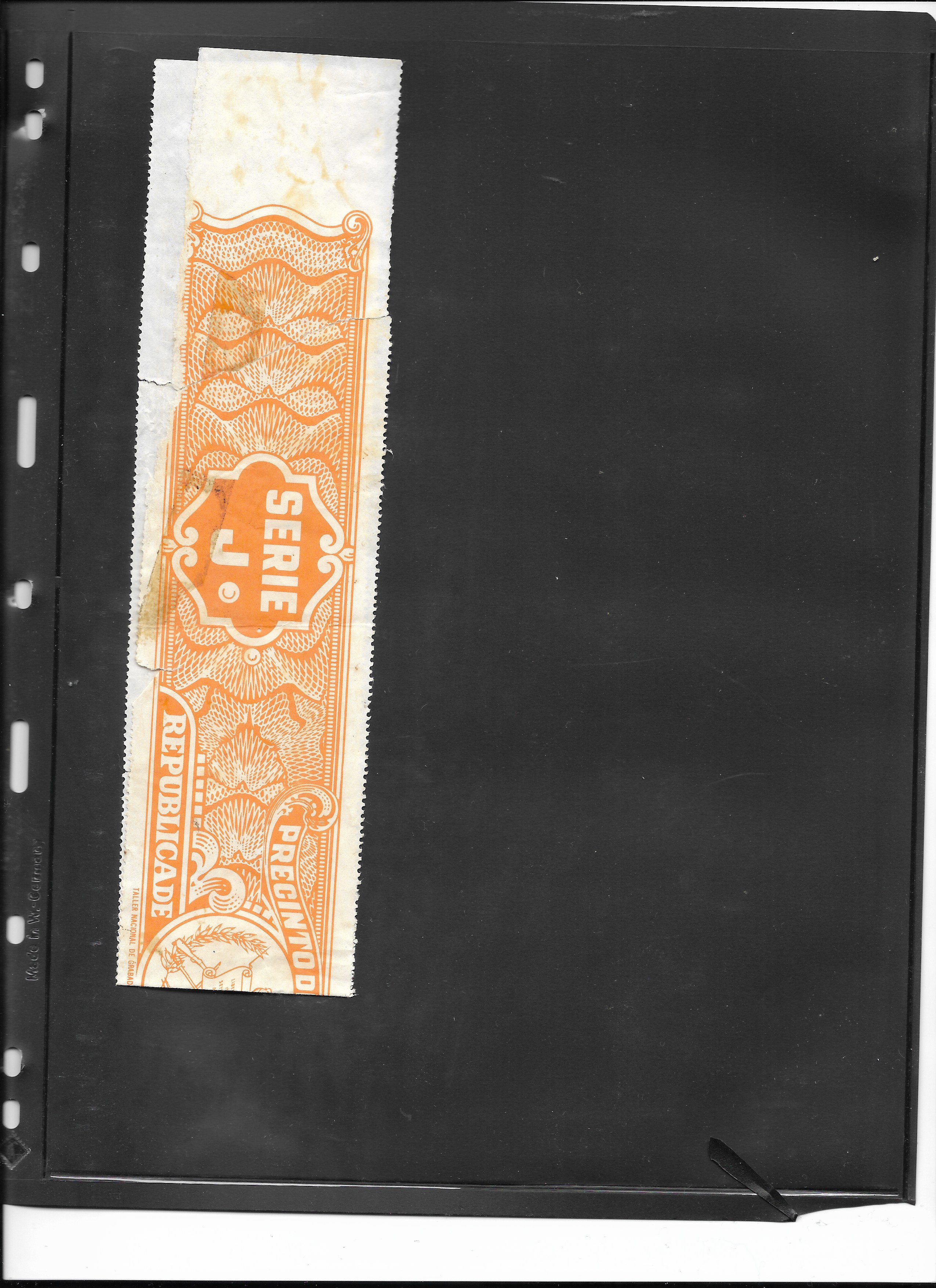 GU-01--Odds and Ends accumulation on a stock page. Includes cut squares, telegraphs, revenues, bisects on piece, cancels that the owner thought were interesting, labels, including one revenue stamp over 15 inches long (faulty but really cool--one half of it is scanned). There are 85 pieces here (if multiple stamps on piece or in a block, they were counted as one piece). This interesting lot can be yours for just $50. SCAN1 SCAN2