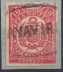 3N13v Double overprint of the Arequipa double ring -- black over violet. It is supposed that the violet was not sufficiently visible. used PHOTO $15each