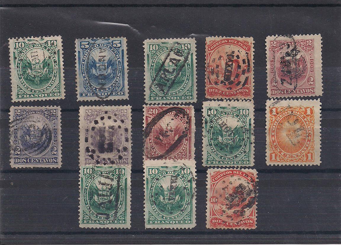 Chile used in Peru--Nice group of 10 different cancels, including Callo, Pisagua, Lima, Iquique, Chimbero, Paiti, Antofagasta, Moquegua, Tacna and Santa Cruz, rarely seen, PHOTO $250
